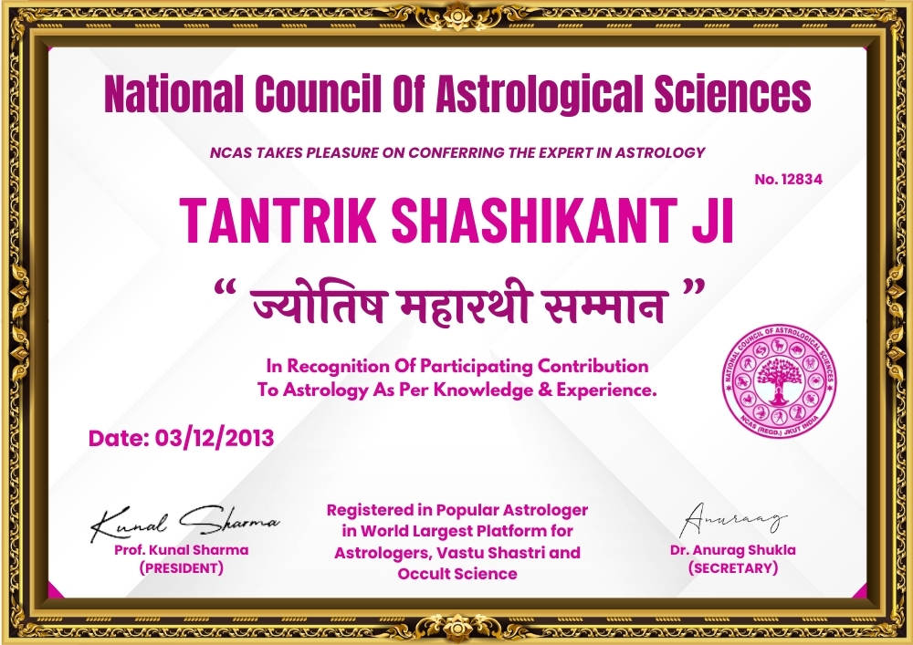 Vedic astrology is currently gaining popularity. People from all across the world ask inquiries of Tantrik Shashikant Shastri Ji. People often seek him out for his honest counsel and precise predictions.